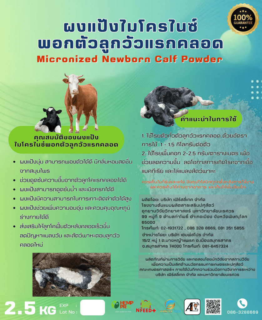 ผงแป้งไมโครไนซ์พอกตัวลูกวัวแรกคลอด “Micronized Newborn Calf Powder“